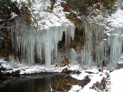 Por contraste, podemos comparar con estas bellas imágenes de pleno invierno donde las aguas se convierten en fríos y duros hielos en forma de chupiteles.